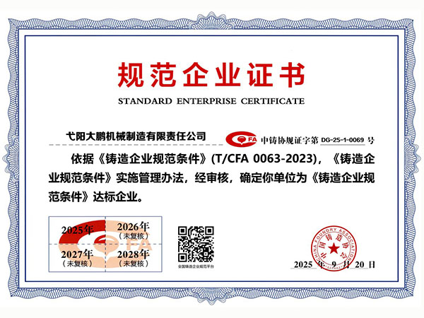 公司順利通過(guò)質(zhì)量管理體系認(rèn)證、環(huán)境體系認(rèn)證、職業(yè)健康安全管理體系認(rèn)證、環(huán)評(píng)。2015年5月獲國(guó)家工信委頒發(fā)的《鑄造企業(yè)準(zhǔn)入條件》;2019年做了安全現(xiàn)狀評(píng)價(jià);2020年取得了排污許可證。